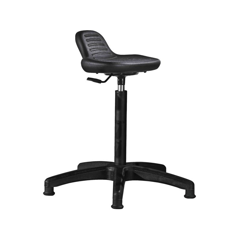 Assise en polyuréthane, épaisseur 40 mm, densité 300 kg/m3. Vérin à gaz, base étoile (5 branches ) en nylon noir sur patins ou roulettes. Capacité de charge max. 120 kg L x P : 34 x 35 cm