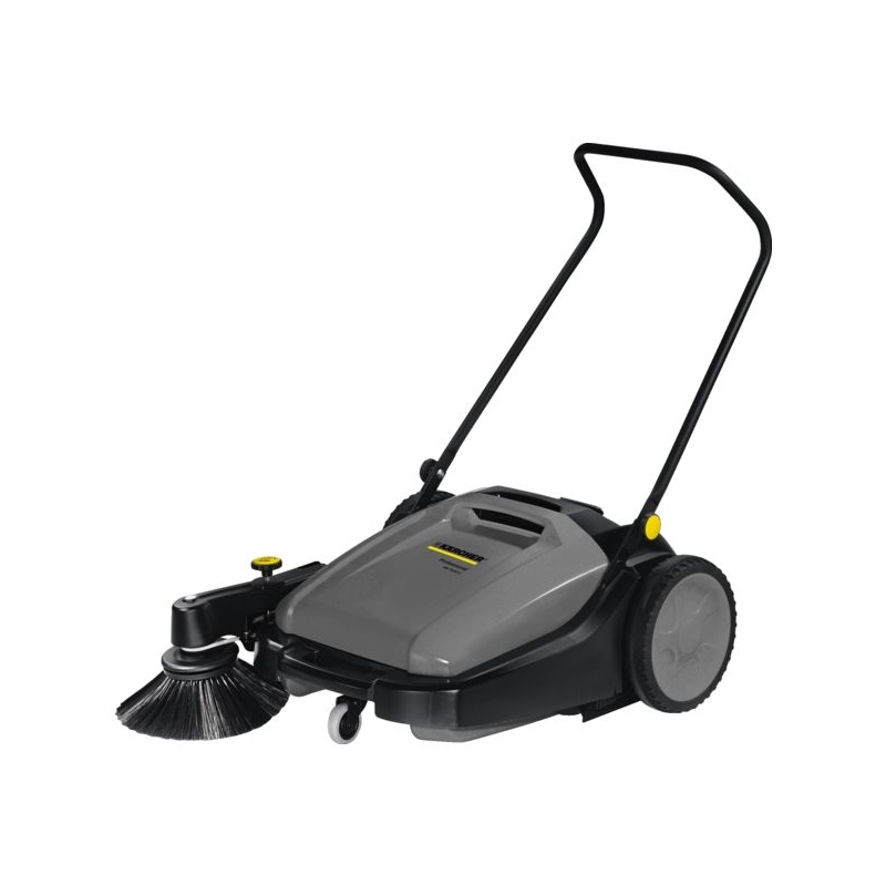 Utilisation en extérieur et en intérieur. Filtre à poussières fines. Entraînement du balayage manuel. Balai principal réglable. Timon rabattable. Rendement surfacique : 2800 m²/h Largeur de travail : 480 mm Largeur de travail avec un balai latéral : 700 mm Cuve à déchets : 20 l Poids : 23 kg Dimensions : 1300 x 850 x 1050 mm