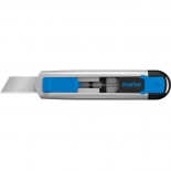 Double curseur de chaque côté. Corps en aluminium. Rétraction semi-automatique de la lame. Profondeur de coupe : 36 mm