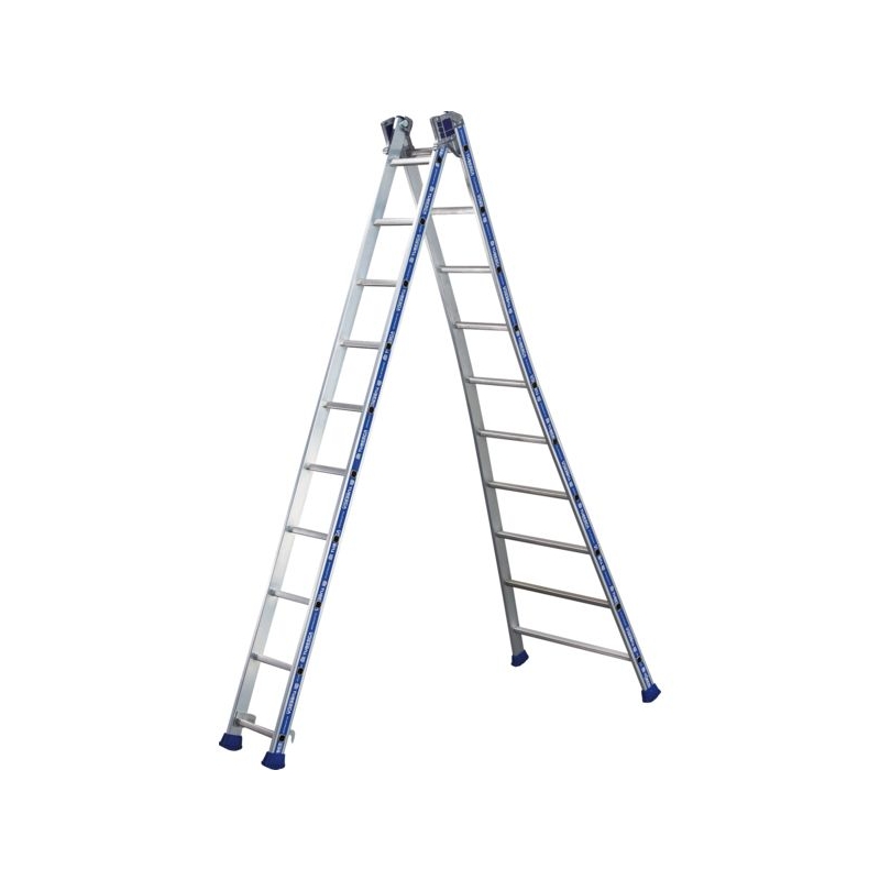 Utilisation sur sol plat ou dénivelé, usage ultra intensif. En aluminium. Échelons 30 x 30 mm. Articulation et montants renforcés. Glissière en aluminium avec patins de glissement intégrés. Base évasée pour une stabilité maximum. Sabots enveloppants avec témoin d'usure. Charge maxi : 150 kg Norme : NF - EN 131 - Décret 96 333