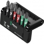 Technologie Impaktor avec diamant pour une très longue durée de vie en usage intensif et sur visseuse à chocs. Take it Easy pour trouver facilement le bon profil grâce à la couleur et la bonne taille grâce au marquage. Attachement 6 pans 1/4 . Composé de 6 embouts de 50 mm: - 2 embouts Phillips® 2 - 3, - 2 embouts Pozidriv® 2 - 3, - 2 embouts Torx® 25 - 30.