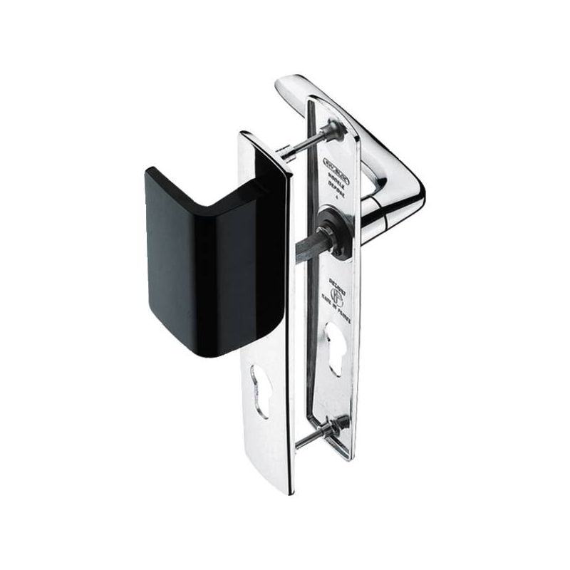 Monobloc en zamak, plaque et béquille solidarisées. Pour porte d'épaisseur 40 mm. Plaque avec piliers taraudés. Clé I. Plaque : 215 x 41 mm Entraxe de fixation : 195 mm Entraxe de serrure : 70 mm Fouillot carré : 7 mm Finition : chromé miroir Conditionnement : boite Colisage : 5 pièces 100% recyclable.