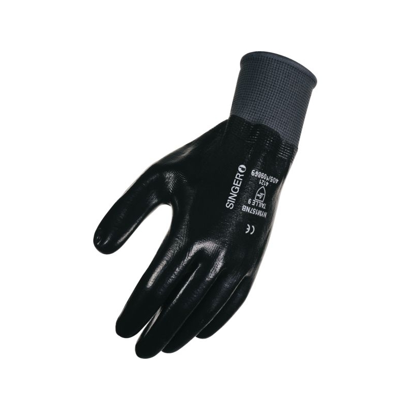 Tout enduit de nitrile lisse. Support tricoté sans couture en fibres polyester, jauge 15. Traitement Actifresh®, poignet élastiqué. Manipulation légère / Milieu humide Applications métiers : industrie automobile, mécanique de précision, maintenance industrielle. Taille : 6 à 11 Norme : CE Cat II - EN 388 (4121X)