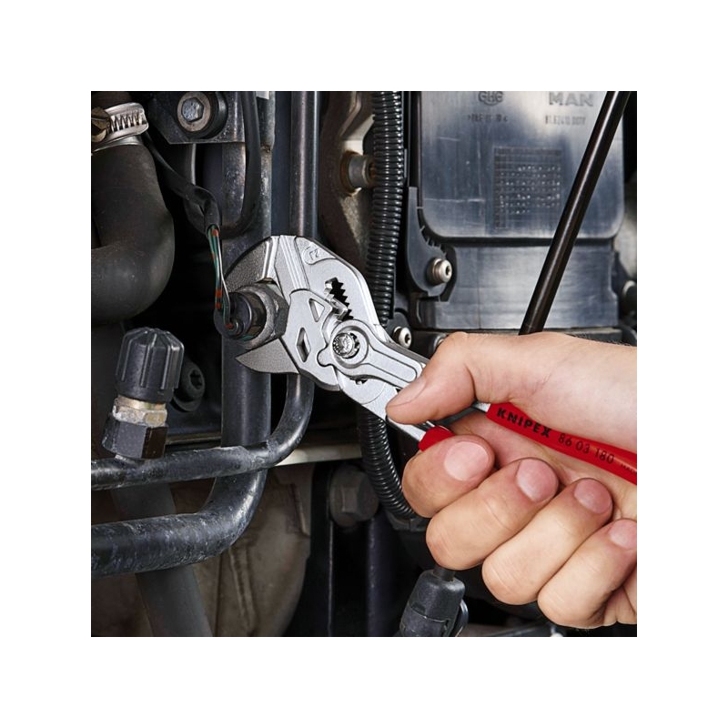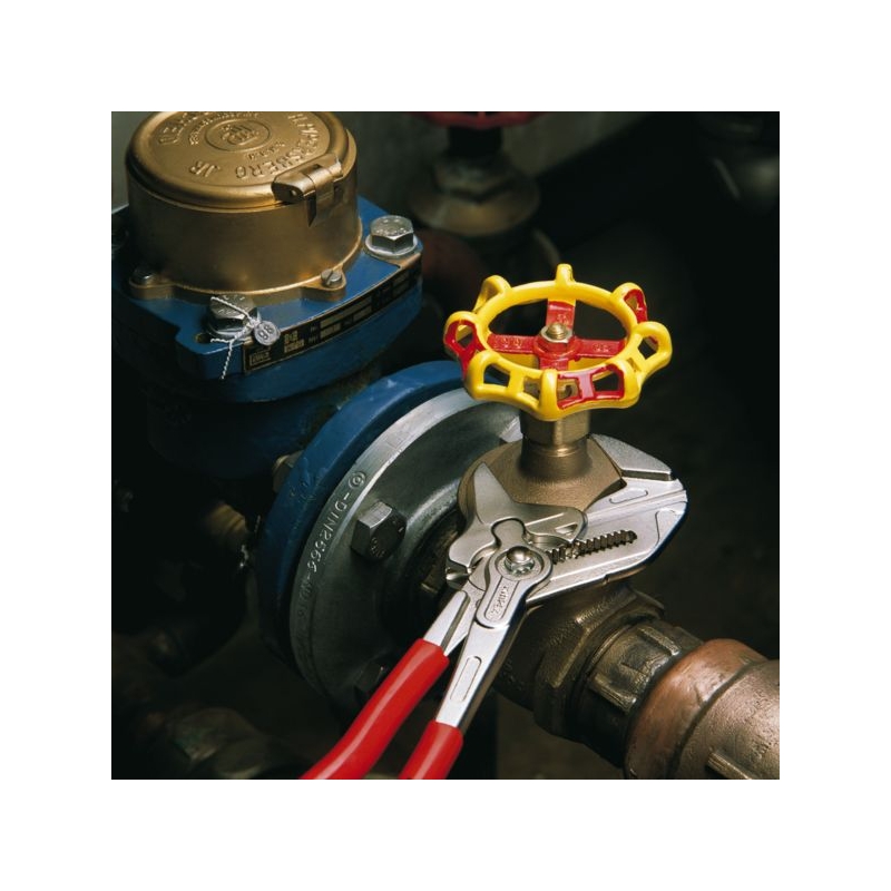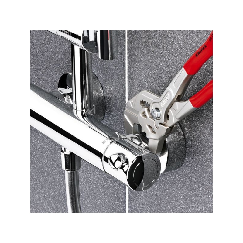 Remplace tout un jeu de clés plates, métriques et en pouce. Mâchoires lisses n’endommageant pas les supports. Réglage par simple pression du bouton. Poignées gainées en PVC.
