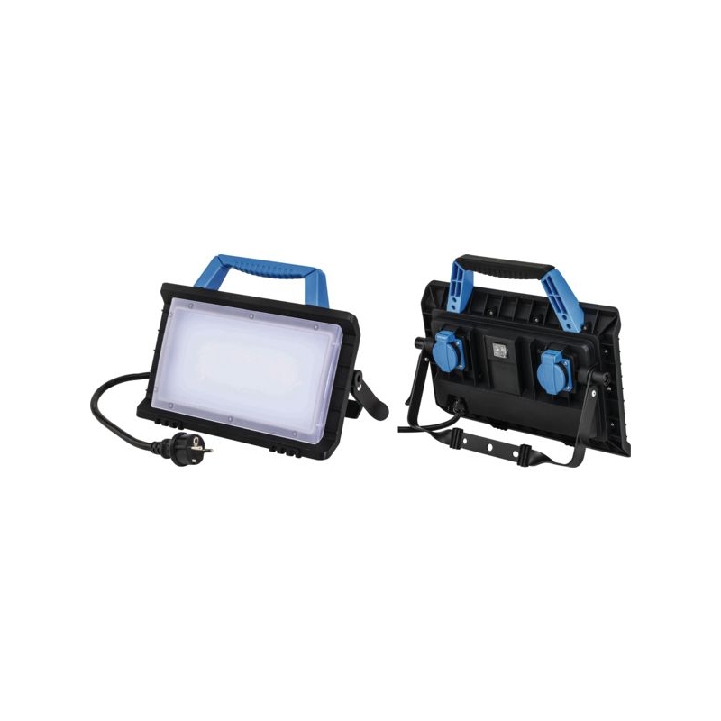 Boîtier en matière synthétique spéciale avec étrier pliable. Cordon 3m HO7RN-F 3G1.5. 2 modes d'éclairage 50 ou 100 % Angle du faisceau LED : 100° Température de couleur : 4000 K Indice de protection : IP54
