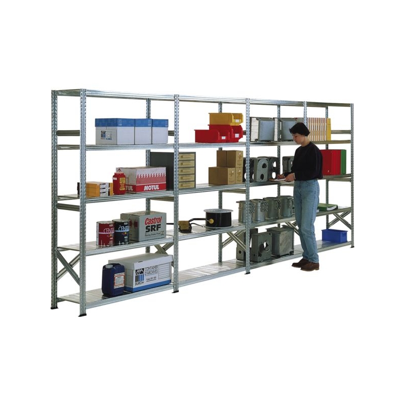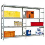 Entièrement galvanisé, composé de 4 niveaux pour charges mi-lourdes ou volumineuses avec tablettes réglables au pas de 33 mm. Montage sans vis ni boulon. Échelles livrées montées avec pieds métalliques. Livré démonté. Charge par tablette : 530 kg H x L x P : 2500 x 1880 x 600 mm Autres dimensions nous consulter.