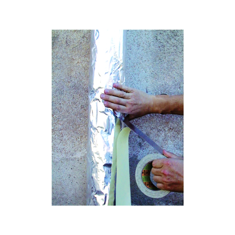 Jointage et isolation pour plombiers et chauffagistes. Aluminium 40 µ (microns). Déflecteur de chaleur. Résistance température : 110°C Largeur : 50 mm Longueur : 50 m Classement au feu M1 N°15-04134L.