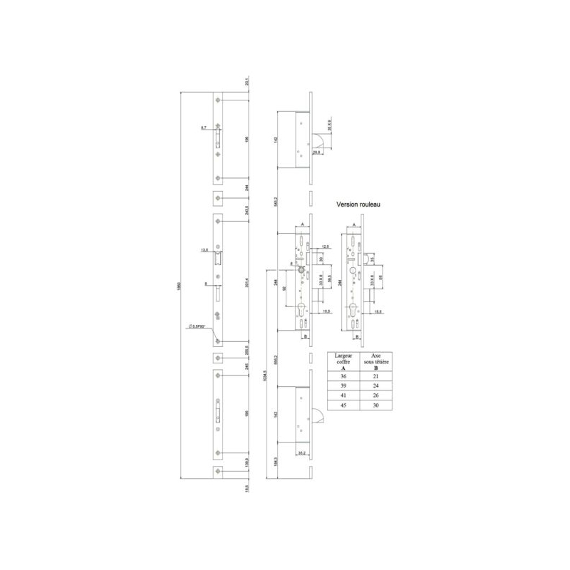 Solution adéquate de remplacement de serrure à encastrer pour profils européens aluminium et acier. Compatible avec les standards du marché. Pêne dormant et ½ tour. Pêne ½ tour réversible. Gâche centrale à commander séparément. Dimensions coffre central : 244 x 18 mm Saillie pêne ½ tour : 12 mm Saillie du pêne dormant : 15.5 mm Entraxe : 92 mm Fouillot carré : 8 mm Têtière en U : 1860 x 24 mm Conditionnement : boite