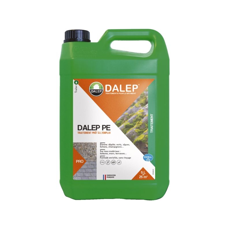 Application sur toitures, murs, terrasses. Élimine les algues, lichens, champignons. Effet longue durée. Prêt à l'emploi, sans rinçage. Rendement : 5 m²/l Cdt : 30 L